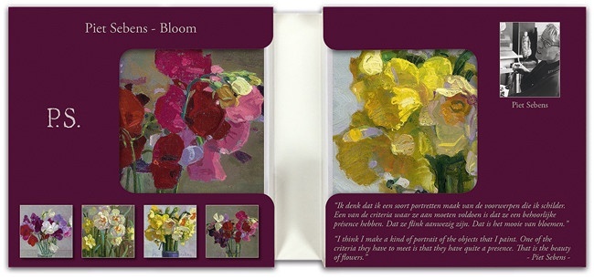 Kaartenmapje met 4 x 2 kaarten met prachtige kleurrijke bloemen van kunstenaar Piet Sebens.